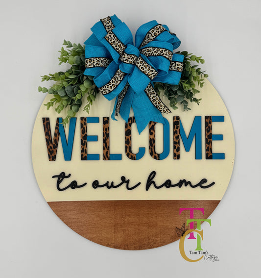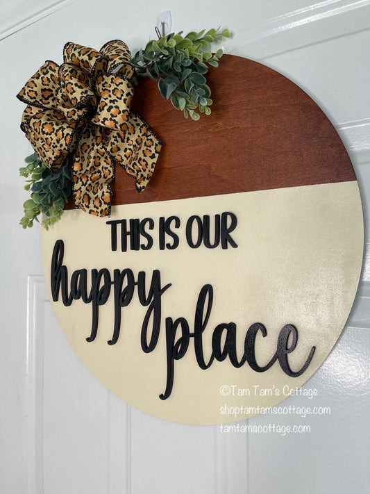 This Is Our Happy Place Door Hanger – Rustic Leopard Bow Decor 18 inch
